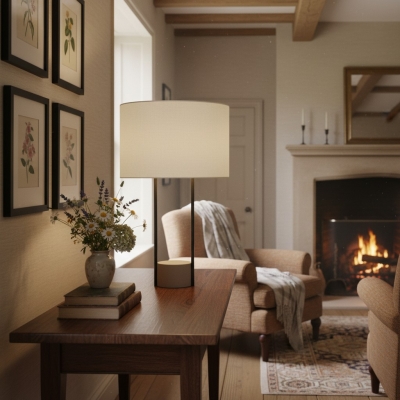 Lampe de table et lampadaire Luma Minimaliste de style industriel – Structure en métal et abat-jour en tissu doux pour la maison et le bureau